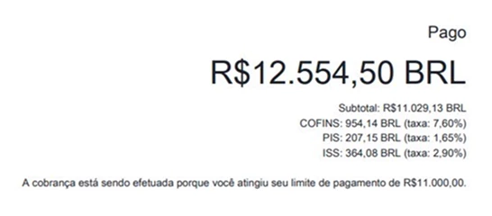 Olha esse print real de uma das nossas contas já com os impostos embutidos.